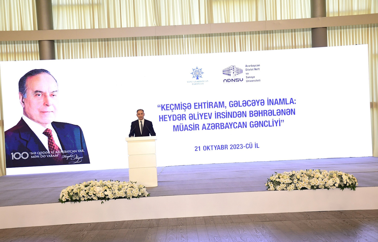 Dekabrın 9-da Yeni Azərbaycan Partiyasının (YAP) Mərkəzi Aparatı və Azərbaycan Dövlət Neft və Sənaye Universitetinin (ADNSU) birgə təşkilatçılığı ilə Ümummilli Lider Heydər Əliyevin anadan olmasının 100-cü ildönümünə həsr olunmuş “Heydər Əliyev və Yeni Azərbaycan” mövzusunda konfrans keçirilib.